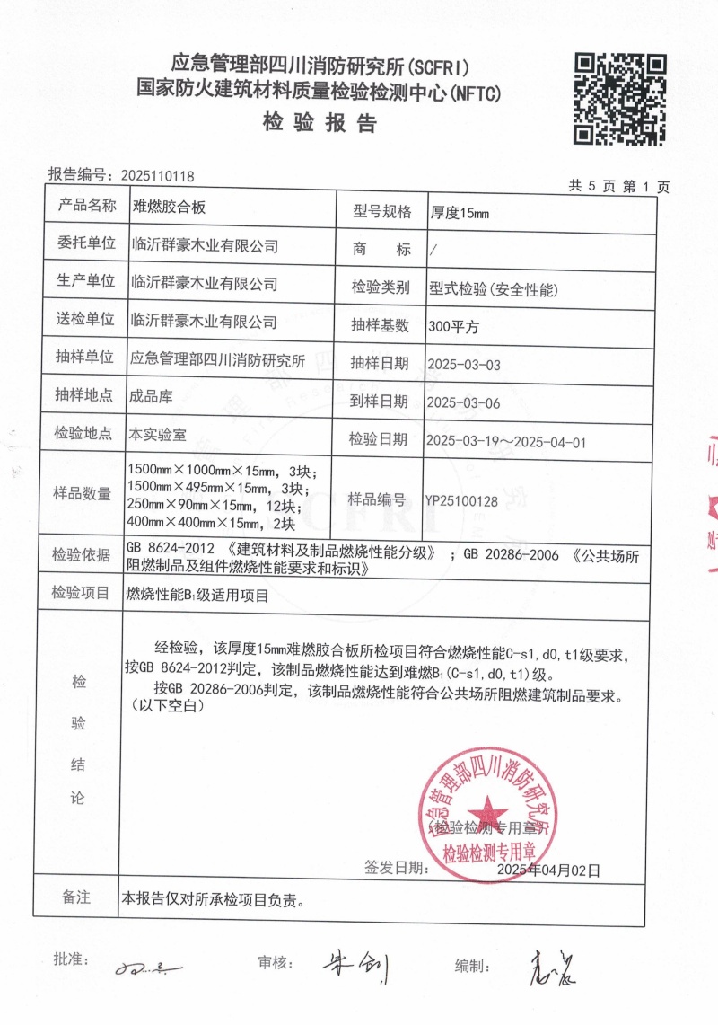 2025難燃膠合板15厘檢測(cè)報(bào)告